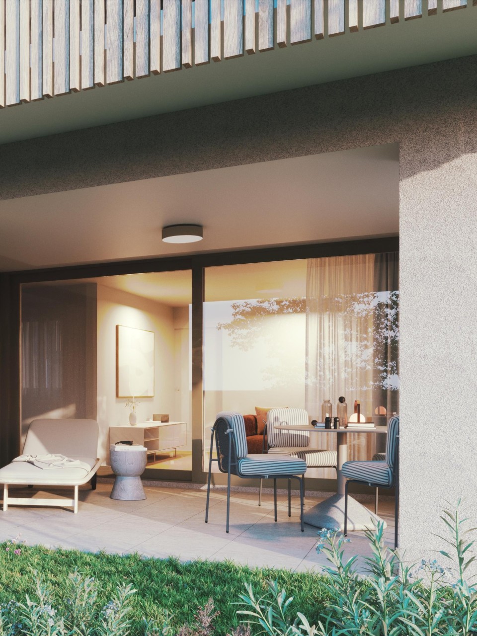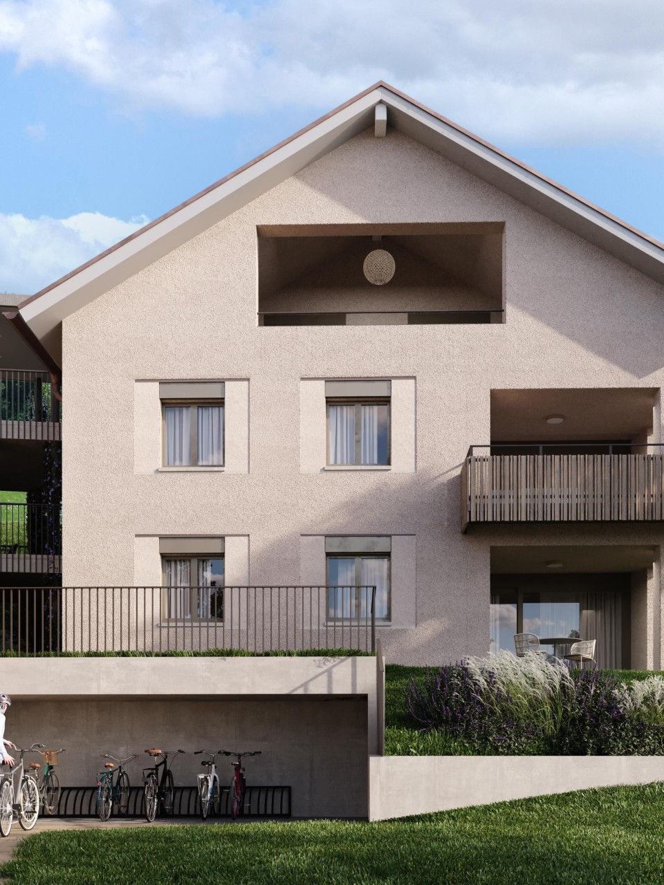 Je nach Wohnung mit Garten und Sitzplatz oder mit grosser Loggia